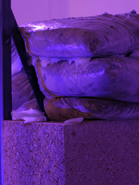 Concrete, steel, jubilee clips, synthetic fibres, grass from the Heath, branches, petroleum jelly.